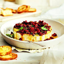 Pile generously on top of cheese and bake for 15 mins in a 350 oven. Serve with crackers or a baguette